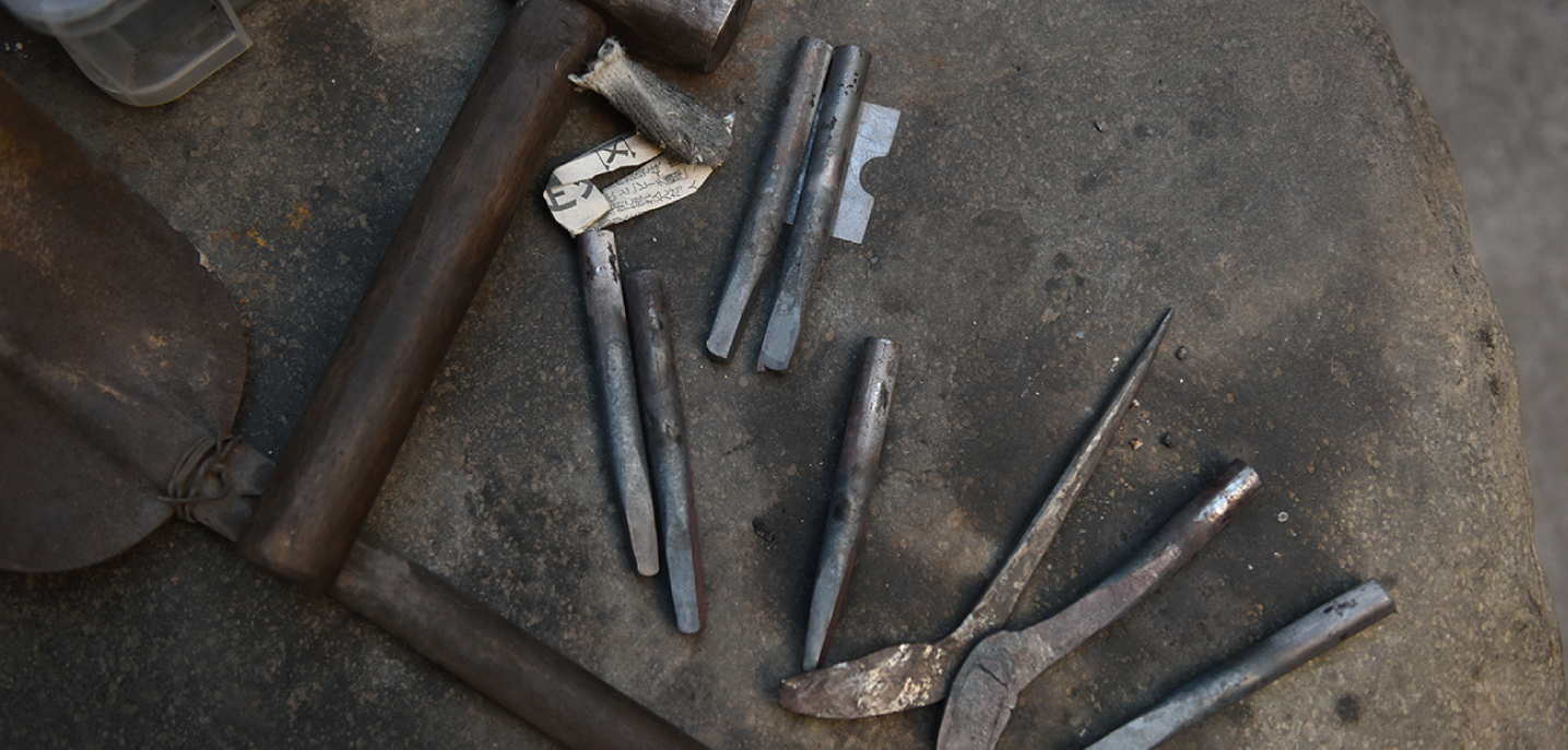 富士山ナイフはシーラカンス食堂が運営する「WORK SHOP」にて後継者育成と連動した商品です。小刀や、やっとこはWORK SHOPにて見習い職人が鉄の棒から造ります。まだ未熟な職人が一から作る、将来への期待を感じる一品。どうぞご支援ください。