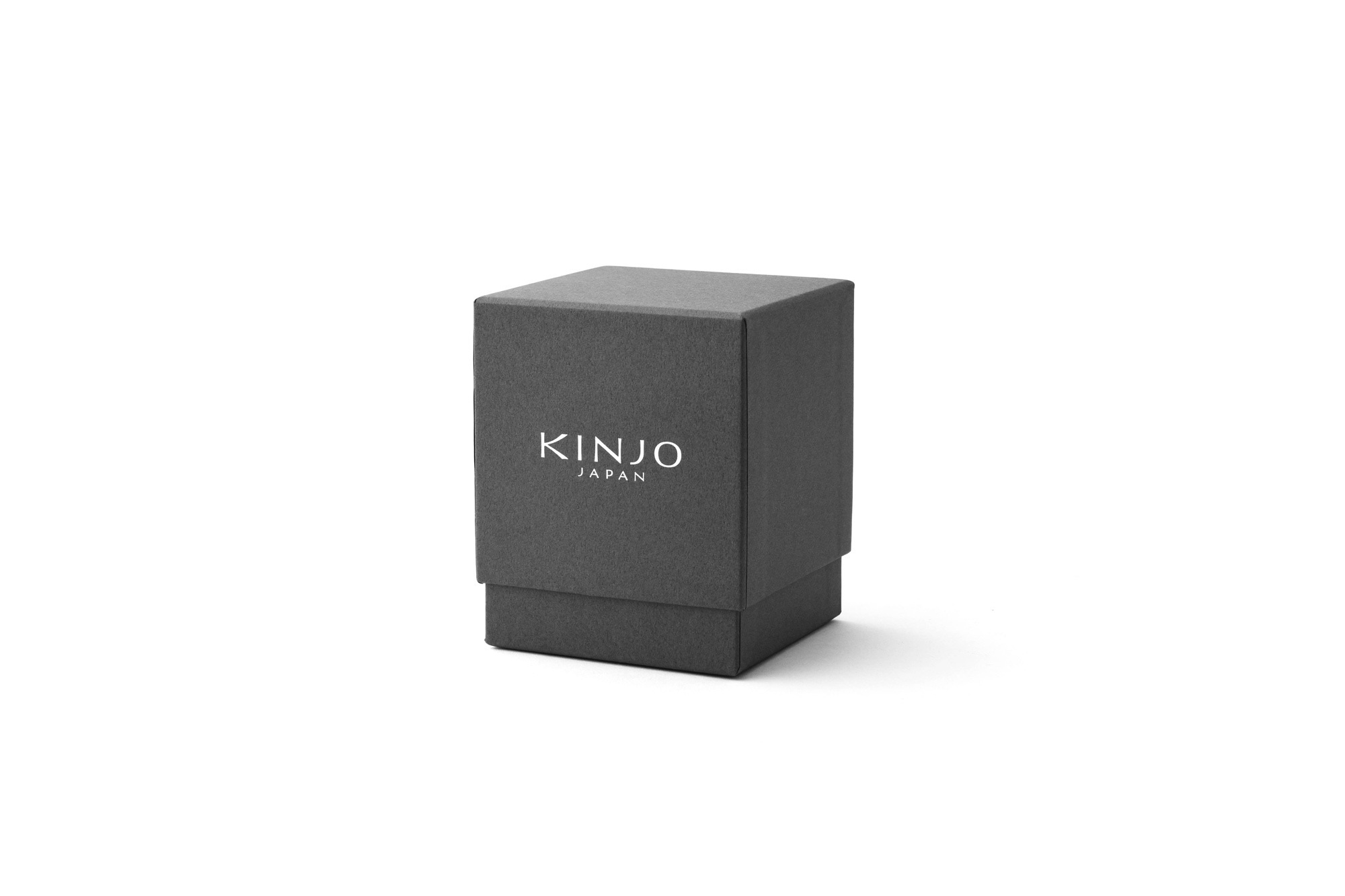 ギフトにも喜んでいただけるよう、パッケージはひとつひとつ紙箱に入れられており、前面にはKINJOの銀の箔押しが施されております。