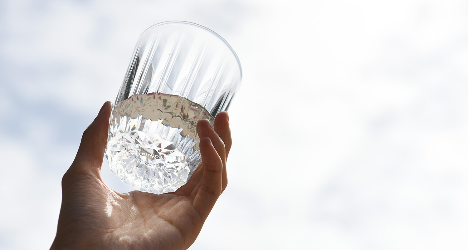デザインは底面に至るまで細部にこだわり、ウィスキーなどのお酒、コーヒーやカフェラテ、ジュースなど、どんな飲み物にもマッチします。屋内ではもちろん、アウトドアでも運搬時や使用時に破損する恐れがありません。